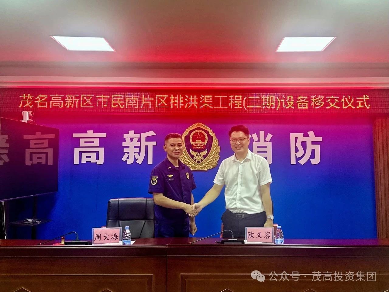 2025年8月20日下午,茂名高新区市民南片区排洪渠工程(二期)部分设备交接仪式在茂名高新区消防救援大队会议室顺利举行。茂高投资集团作为该项目的实施主体,正式将相关应急抽排装备及配套设备移交给茂名高新区消防救援大队,这次设备交棒,标志着该工程正式进入运维保障新阶段,将进一步强化茂名高新区防汛应急能力。