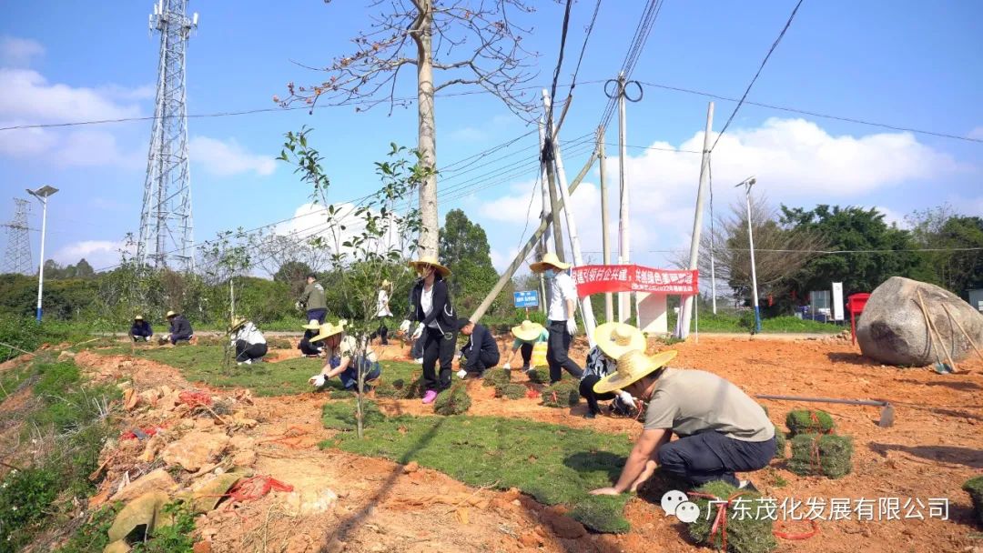 当天上午9时,茂化发展公司70多名党员、干部、职工分批到达植树地点,在党支部书记余杰同志的带领下,全体党员、干部、职工顶着烈日,充分发扬不怕苦、不怕累的精神,现场分工明确、相互协作、密切配合、忙碌有序。经过接近3个小时的放苗、扶正、挥锨镇土的辛勤工作,共栽植各类树苗200余株,草皮1000多方。一排排新种下树苗昂然挺立,为打造美丽宜居的那增村,增添了一片新绿。