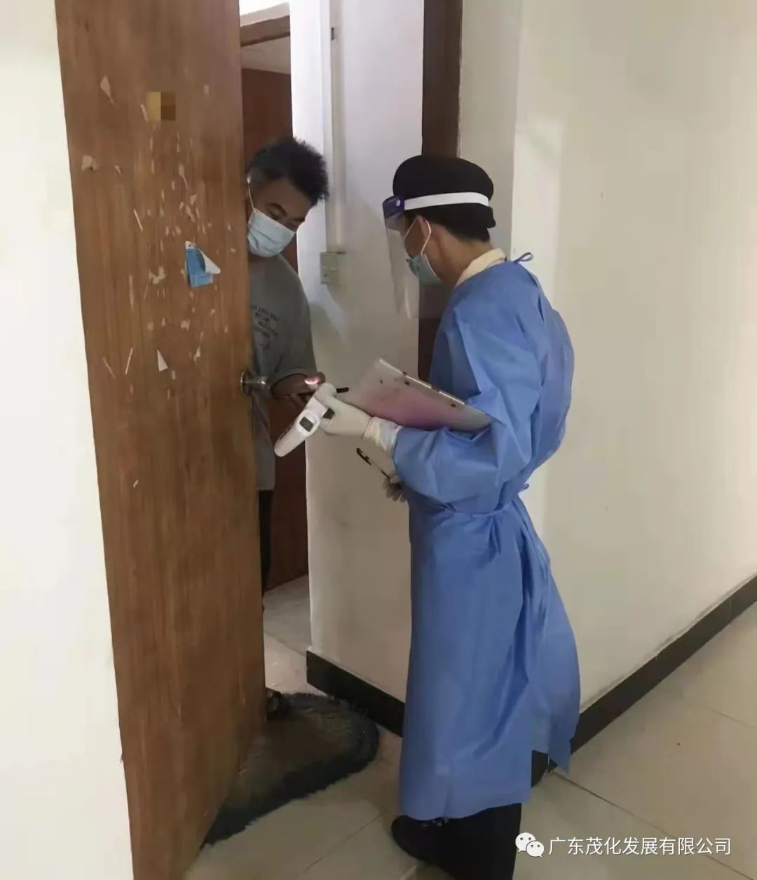 志愿者们根据手上的806户住户名单,逐层逐户上门拜访,严格按照“一敲”(敲门行动)、“二问”(问物业管理者住户入住情况,问住户日常出入情况及近段时间行程轨迹)、“三查”(查验粤康码、行程卡、核酸检测报告)、“四不放过”(住户不开门不放过,房内人员情况没摸清不放过、体温测量没完成不放过,对中高风险地区等重点返茂人员不放过)要求,对小区住户的详细信息进行核查登记和建档造册,确保小区疫情防控管理“底数清、数据准、情况明、无遗漏”。