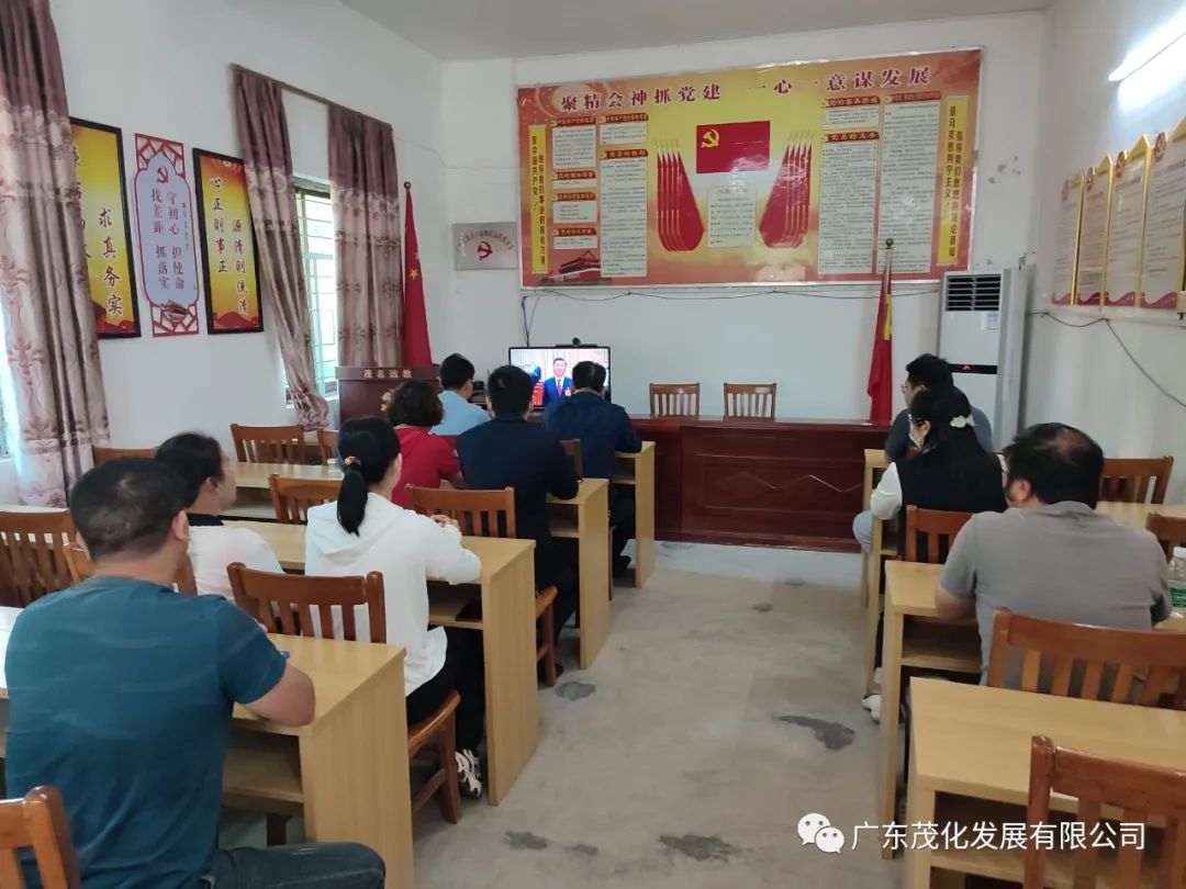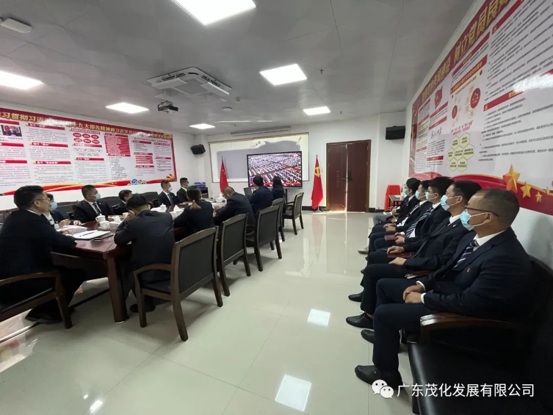 10月16日上午,广东茂化发展有限公司组织全体党员、中层以上领导干部在公司总部大会议室集中收听收看党的二十大开幕会直播,认真聆听习近平总书记所作的报告。公司财务总监余珊琪与党工人事部负责同志到包联单位那增村委与村委干部共同观看。