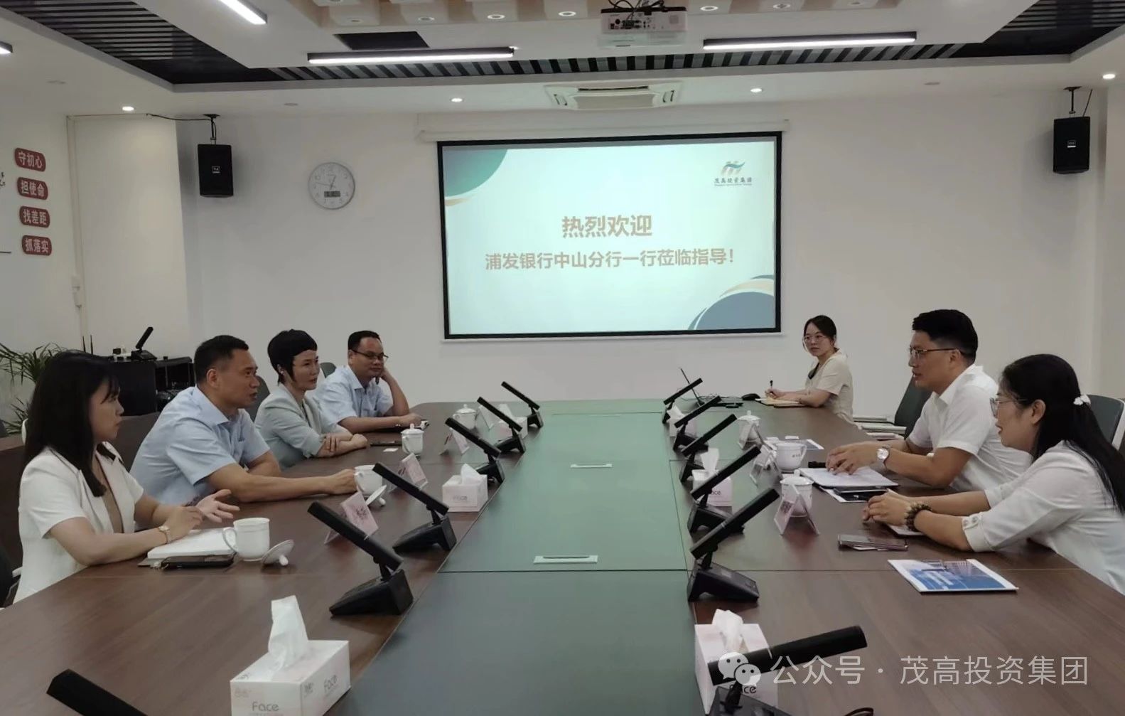 6月18日下午,浦发银行中山分行行长王绵志一行到访茂高投资集团,集团董事长、总经理欧义容,副总经理余珊琪热情接待,双方就深化合作事宜开展座谈交流。